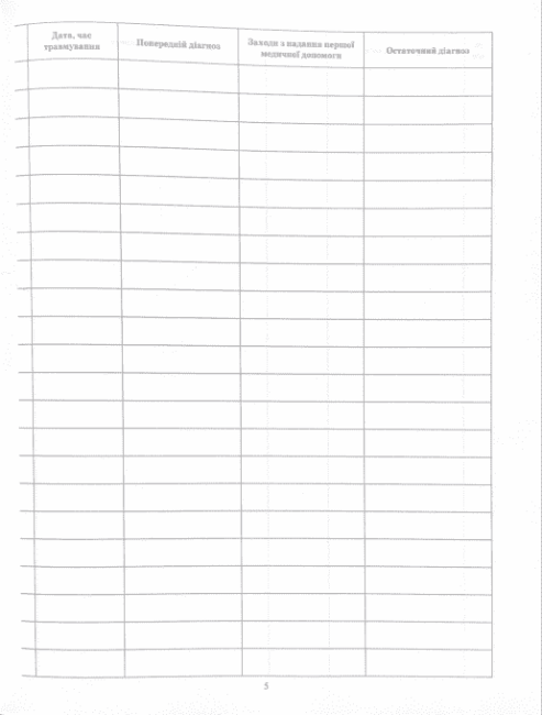 Журнал обліку травматизму Бочкарєва Г. Ранок