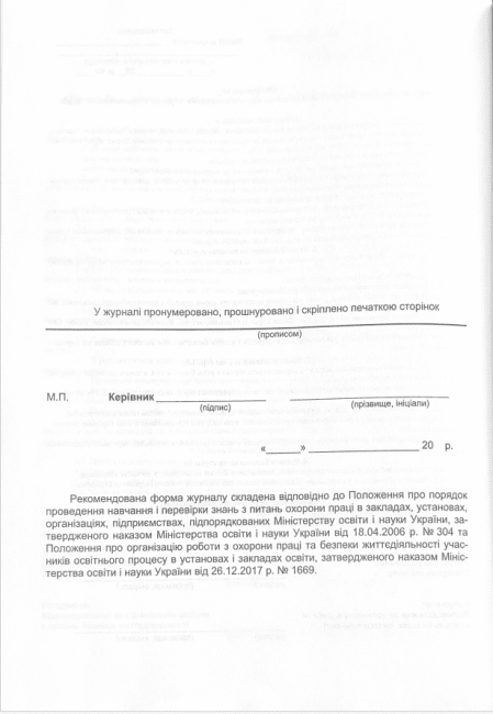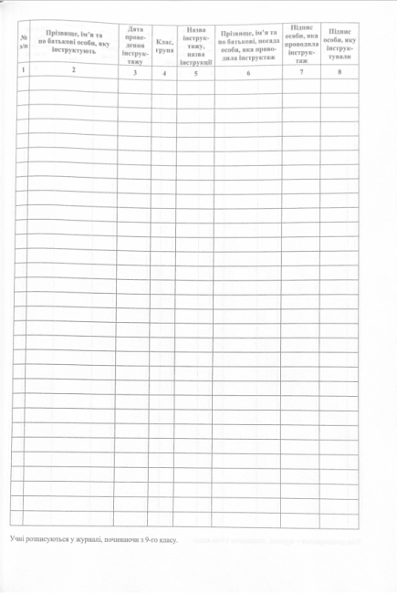 Журнал реєстрації первинного позапланового цільового інструктажів з безпеки життєдіяльності учнів студентів курсантів слухачів Астон