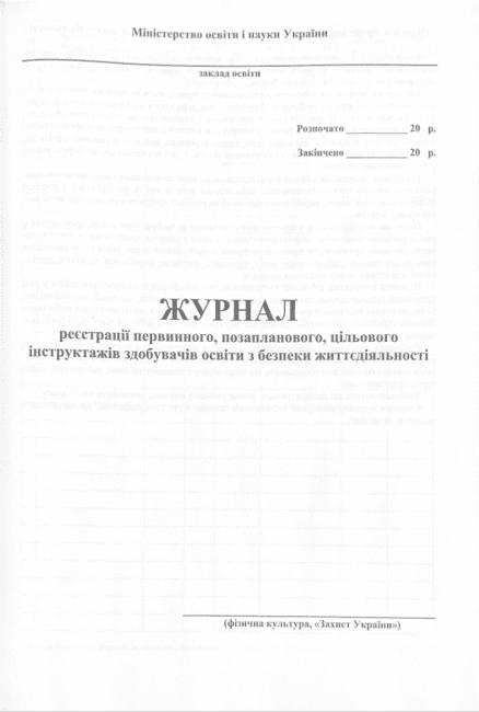 Журнал реєстрації первинного, позапланового, цільового інструктажів з безпеки життєдіяльності учнів, студентів, курсантів, слухачів (фізкультура, захист України) Астон 30582