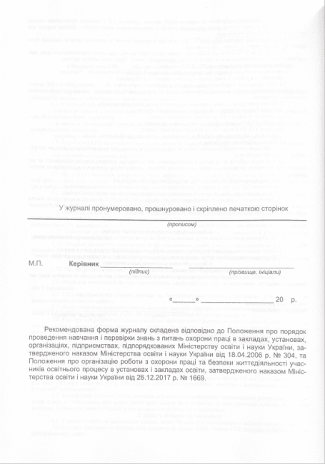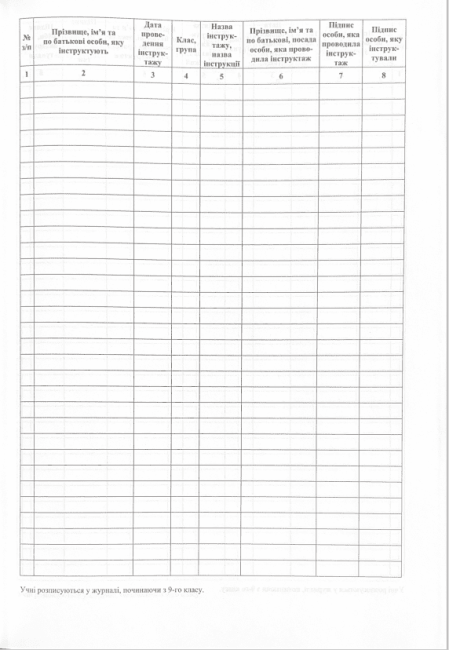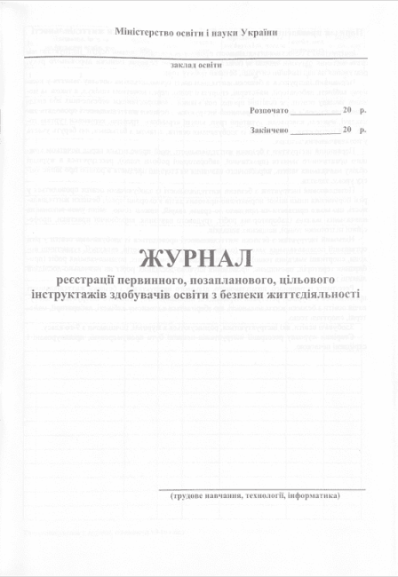 Журнал реєстрації первинного, позапланового, цільового інструктажів з безпеки життєдіяльності учнів, студентів, курсантів, слухачів (трудове навчання, обслуговуюча праця, креслення) 98327