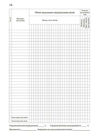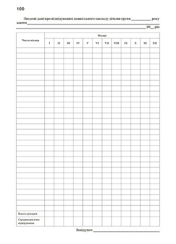 - у таблиці "Облік щоденного відвідування" є "Зведені дані про відвідування", в яких вихователь може вказувати зведену інформацію про відвідуваність групи;