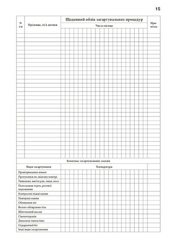 - у журналі детальний опис методики загартовування, є місця для записів ведення щоденного обліку процедур;