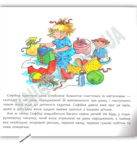 У Софійки день народження їй виповнилось три роки. Нарешті вона достатньо підросла, щоб іти до дитячого садочка! І уже в перший день там на неї чекає багато пригод. У серії Читай і відкривай ви знайдете багато захоплюючих історій для дітей від трьох років. Насолоджуйтесь читанням разом!
