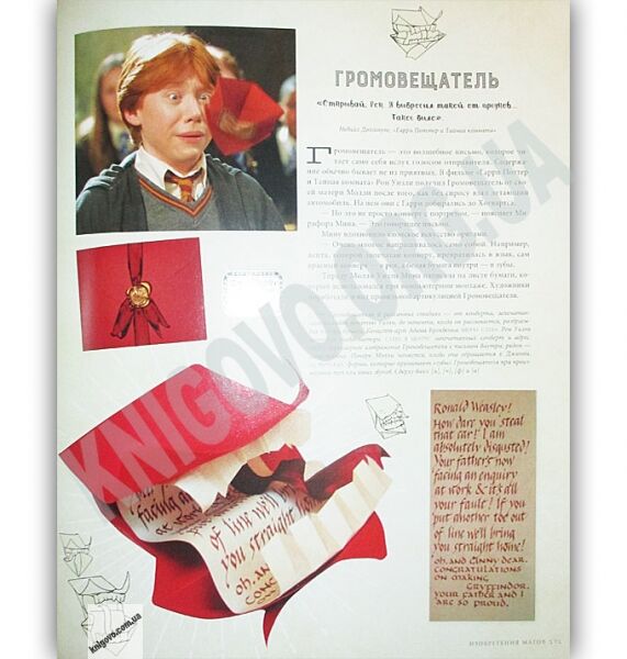 Большая, подарочная книга с магическими артефактами. Говорящие портреты, летающие метлы, кусачие книжки и загадочные крестражи в волшебном мире Гарри Поттера немало удивительного! А чтобы все эти уникальные предметы появились на большом экране, декораторам, дизайнерам и реквизиторам пришлось немало потрудиться.