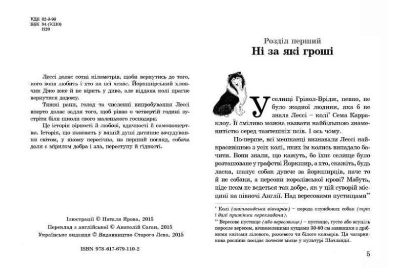 Лессі повертається додому Авт: Найт Ерік Видавництво Старого Лева. Лессі долає сотні кілометрів, щоби вернутись до того, кого вона любить і хто на неї чекає. Йоркширський хлопчик Джо вже й не вірить у диво, але віддана колі прагне вернутися додому.