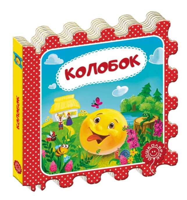 Колобок Казка-пазл Дошколярик. Книжки цієї серії дуже незвичайної форми: вони складаються з 10 аркушів-пазлів, на одному боці яких текст казки поєднаний із зображеннями, а на іншому лише малюнки казкової історії та героїв.