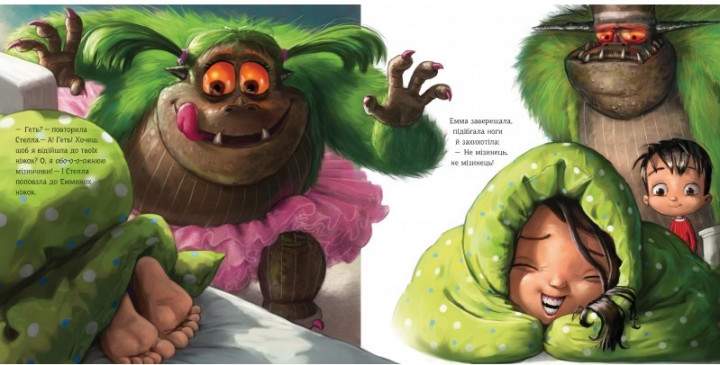 У цій історії пречудове співвідношення сміху й дрижаків, ціла вервечка монстрів на будь-який смак і дуже-дуже хоробра дівчинка, яка боїться тільки гикавки. Чудовиська із цієї книжки не дозволять навіть мізинчика висунути з-під ковдри!