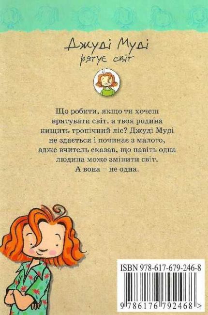 Джуді Муді рятує світ. Це третя книжка з серії про Джуді Муді. Що робити, якщо ти хочеш врятувати світ, а твоя родина нищить тропічний ліс? Джуді Муді не здається і починає з малого, адже вчитель сказав, що навіть одна людина може змінити світ.