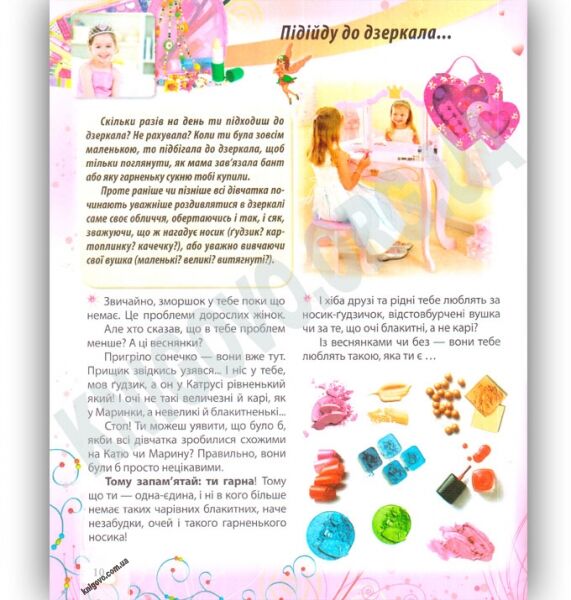 Адже тоді було б дуже нудно і мамам, і татам! Кожна дівчинка — красива, розумна, талановита, хазяйновита, їй тільки треба пояснити, що означає бути такою.