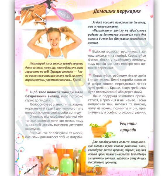 Корисні поради про те, як доглядати за собою; пояснення, як розвивається і дорослішає організм дівчинки; питання про красу і моду; різні рецепти; підказки, як налагодити стосунки з однолітками і навіть як діяти в небезпечних ситуаціях — все це ви знайдете на сторінках нашої енциклопедії