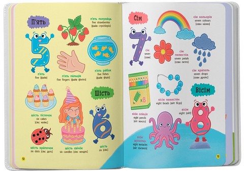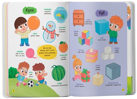 Ця книжка допоможе дитині в ігровій формі засвоїти нові слова, навчитися чітко та правильно їх вимовляти, а також сприятиме розвитку логічного мислення та вивченню навколишнього світу. На кожному розвороті малюк бачитиме великі кольорові малюнки, запам’ятовуватиме нові слова, відшукуватиме задані предмети, відповідатиме на запитання. Підписи в книжці подано двома мовами, що зробить вивчення англійської легким і веселим навіть для найменших.