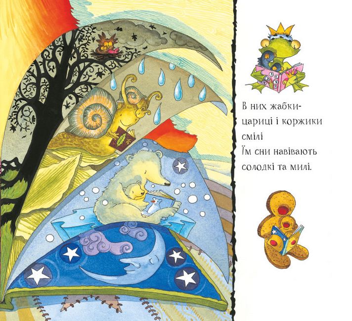 Про що ця віршована історія? Звичайно, про материнську любов, яка сильніша від усіх лих, бурь та бід. Коли мама укладає свою дитину в ліжко, вона заспокоює її нічні страхи перед бурею за вікном обіцянкою доглядати за нею, поки вона спить, як і всі інші дитинчата тварин по всьому світу.