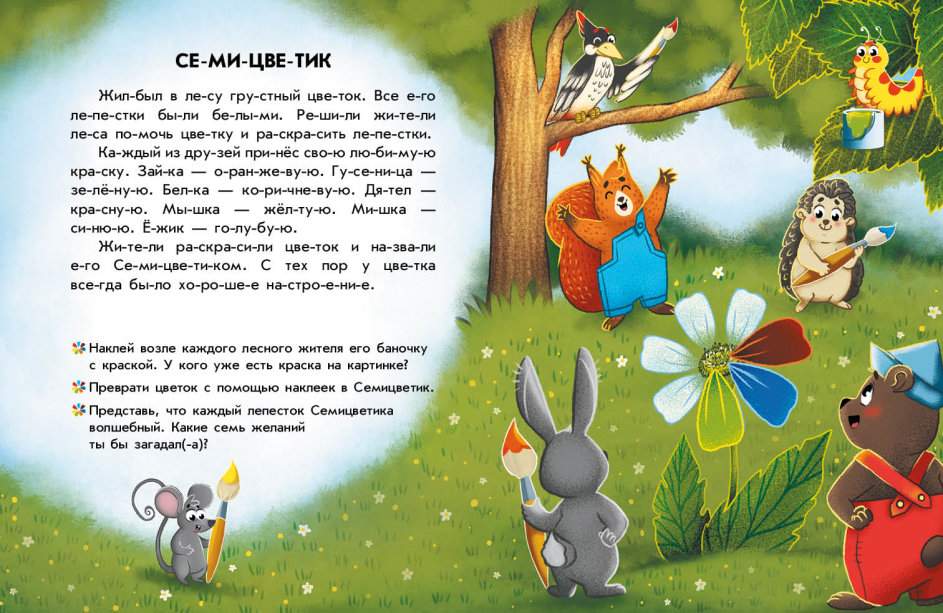 А ответы к ним маленький читатель сможет найти, только если поймет прочитанный текст. А наклейки, яркие рисунки и добрые простые истории сделают процесс интереснее!