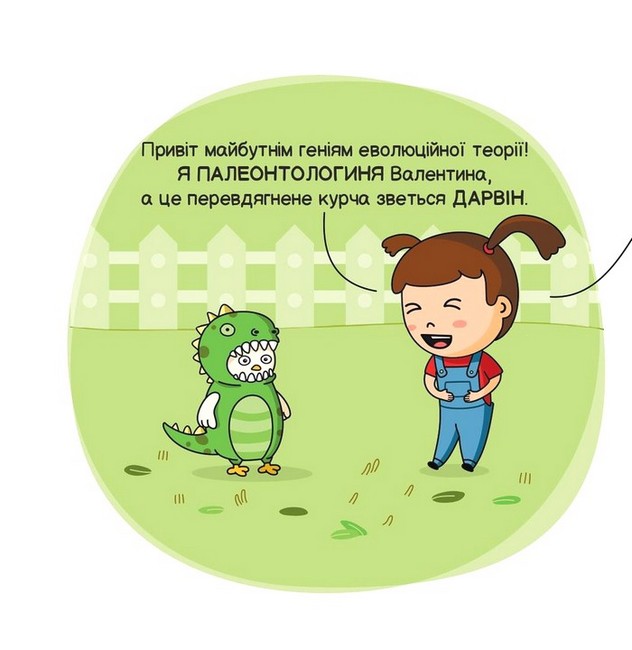 Це книжка із серії «Майбутні генії», що за допомогою близьких дітям персонажів розповідає про сучасну науку. Юні читачі отримають відповіді на всі питання про еволюцію, динозаврів і відмінність видів. Книжки серії легко подають складний матеріал, а кумедні й прості ілюстрації допомагають «майбутнім геніям» засвоїти нові знання.
