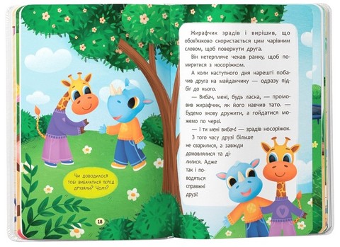 Ваш малюк соромиться познайомитися з іншими дітлахами, засмучується, що його не помічають і грають без нього, ніяковіє та не знає, як навчитися дружбі? Тож завдання дорослих — допомогти дитині подолати сором’язливість, навчитися знаходити взаєморозуміння з іншими дітьми, самостійно вирішувати конфліктні ситуації, а ще берегти дружбу та самому навчитися бути добрим другом. Це видання стане незамінним помічником і пояснить малюку, що таке дружба, а милі герої на своєму прикладі покажуть, як потоваришувати з іншими дітьми і знайти справжніх друзів.