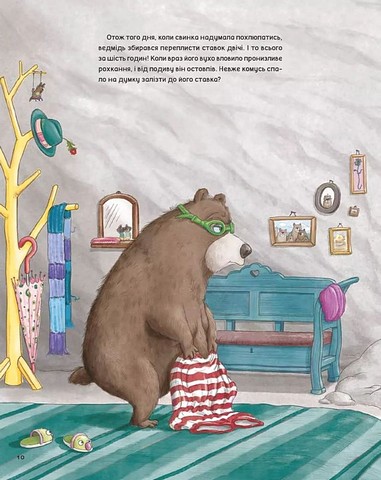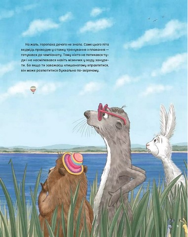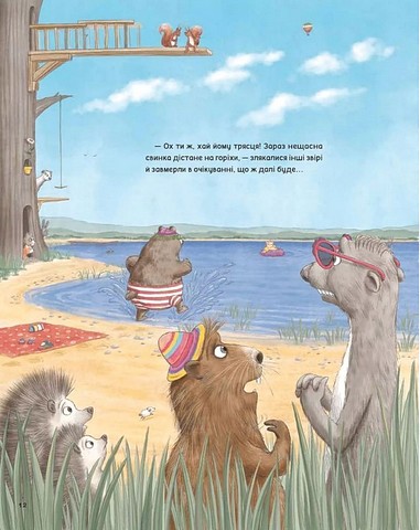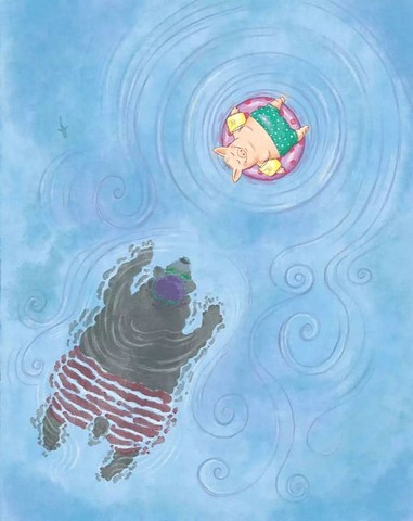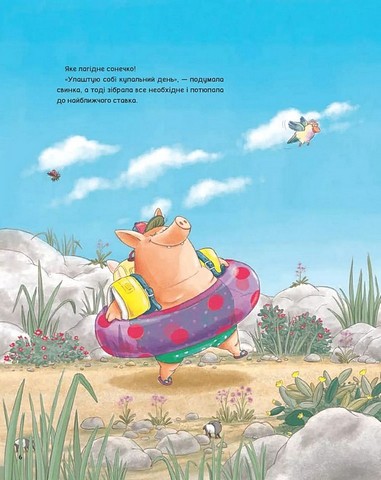 Чудового літнього дня свинка вирішила поплюскатися: у неї є круг для плавання та по вінця гарного настрою. Проте біля ставка на неї чекають неприємності: ведмідь готується до чемпіонату з плавання і дуже сердиться, коли хтось заважає.