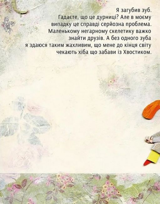 Якось маленький Костик загубив зуба. І страшенно засмутився, бо хіба хтось захоче дружити з таким негарним, і до того ж, щербатим скелетиком? Та ось він зустрічає дівчинку, яка закопує в землю зуб, щоб здійснилося її бажання — знайти друга. Як гадаєте — що далі?