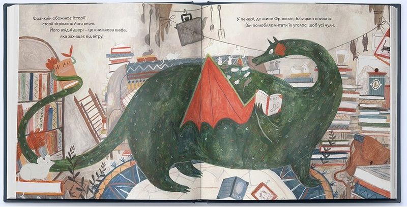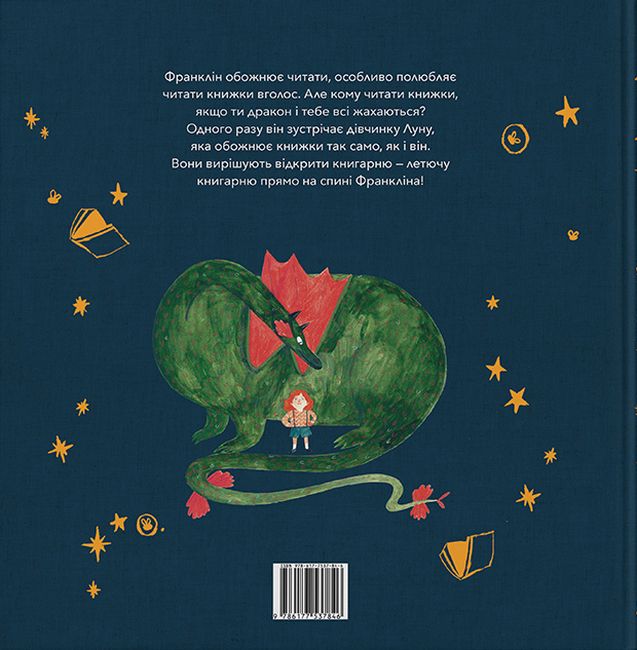 Дракон Франклін любить книжки, особливо читати історії вголос, але всі надто бояться навіть поговорити з ним. Одного разу він знайомиться з дівчиною на ім’я Луна, яка замість того, щоб боятися, захоплюється знайомством із Франкліном, нещодавно прочитавши все про драконів в одній зі своїх книжок. Вони одразу стають друзями та безперервно говорять про прочитане: книжки про катання на роликах, короля Артура, павуків та про кунг-фу. Разом вони прагнуть поділитися любов’ю до книжок з іншими, тож відкривають книгарню — летючу книгарню — прямо на спині у Франкліна!