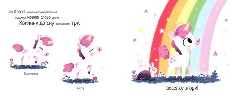 Віршована історія на ніч. За десять хвилин уже пора спати, але одноріжка Квітка готова робити що завгодно, тільки не вкладатися. Щохвилини на неї чекають пригоди! То чи встигне Квітка вчасно повернутися додому?