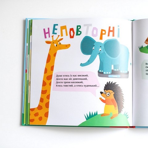 Цю чудову книжку створено спеціально для малят! Короткі віршовані історії про різноманітних тварин допоможуть діточкам змалку зрозуміти, що всі: і тварини, і люди різні, у всіх є переваги й недоліки, є особливості, що роблять нас унікальними. Проте всі ми заслуговуємо на любов і повагу.