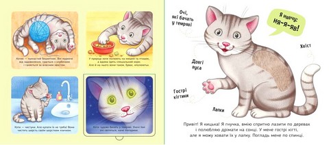 Настав час знайти нових друзів! Кішечки, собачки та інші домашні улюбленці, що мешкають на сторінках цієї книжки, не тільки добрі та веселі, а й пухнасті. Кожну тваринку можна погладити і познайомитися з нею ближче. Малюк дізнається все найцікавіше про нового друга: що їсть, де живе, які має вподобання. Окрім тактильної вставки, на кожному розворот дитину чекає таємне віконце.