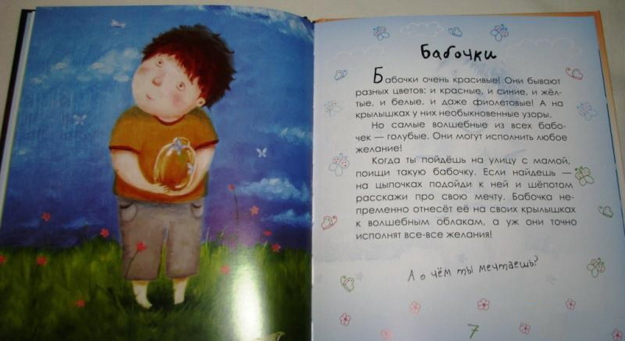 Книга содержит картины и написанные к ним художником истории для детей. В издание вошли картины и рассказки "Зелёнка", "Бабочки", "Путешественница", "Розовые попы (Друзья)", "Письмо", "Клубочек", "Читатель", "Охотник", "Ангелы".