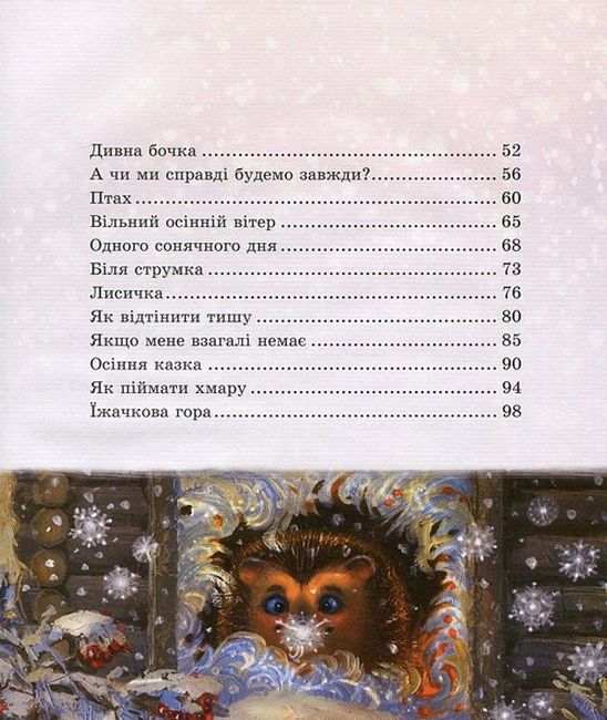 Книга «Їжачок у тумані» — це збірка історій про маленького Їжачка, який живе у лісі та його вірних друзях. Крім того, книга допомагає людям відкривати для себе справжній всесвіт і зрозуміти своє місце у ньому не лише дітям, а й дорослим. Красива і мудра книга. Це книга відчуттів, які охоплюють нас, щойно ми візьмемо її до рук. Це книга знань, адже неї ввійшли історії, які хочеться перечитувати ще, і ще, кожного разу знаходячи в них щось нове й важливе. І не перестаєш захоплюватися геніальністю автора, якому вдалося так багато вкласти в кожну маленьку, здавалося б, наївну сентиментальну дитячу казку. Історії про Їжачка в тумані і його друзів ? філософія, яка допомагає людям відкривати для себе справжній всесвіт і розуміти своє місце в ньому. Це книга надовго.