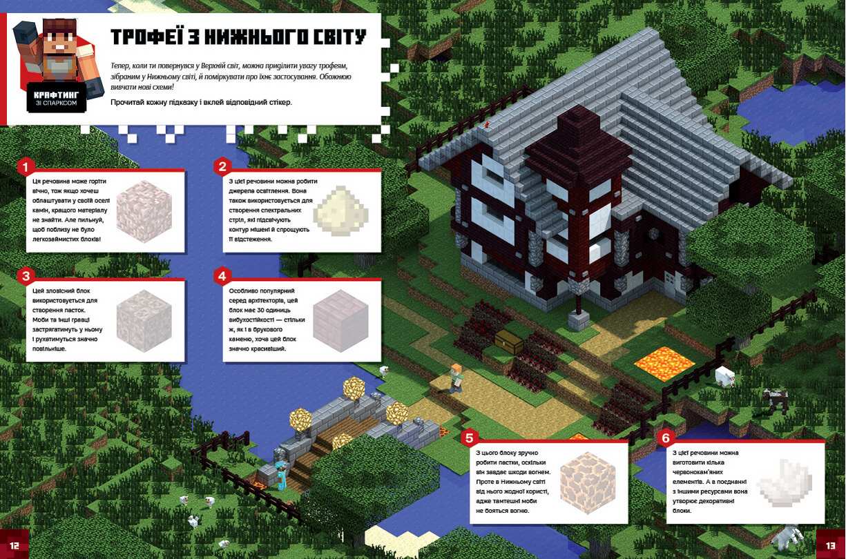 Наш официальный стикербук расскажет, что необходимо взять с собой в путешествие, как противостоять страшным вражеским мобам, где искать генерируемые структуры и трофеи. Все это и намного больше откроется в игровой форме на страницах этой книги!