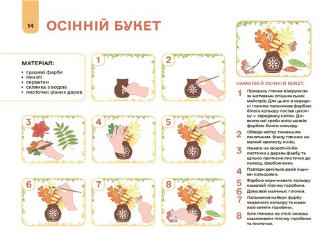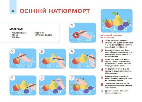 \nПередбачено малювання традиційними та нетрадиційними техніками (штампами, патичком, відбитками природного матеріалу та іншими). Рекомендовано для використання на заняттях у дитячих дошкільних закладах, а також для роботи батьків із дітьми.