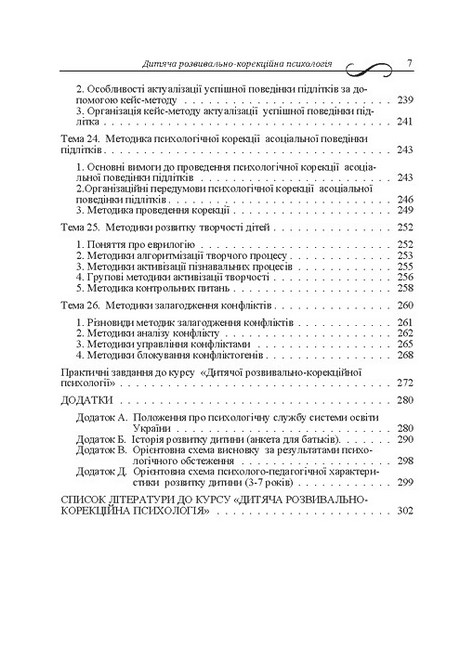 У навчальному посібнику розглянуто поняття і задачі розвивально-корекційної психології, розкрито теоретичні основи і прикладні питання розвивально-корекційної роботи з дітьми на різних етапах їх соціалізації. Проаналізовано психологічні особливості розвитку і корекції спілкування, діяльності, пізнавальних та емоційно-вольових процесів, а також особистості дитини у системі дошкільної і шкільної освіти. Зміст посібника складається з текстів лекцій, практичних завдань, додатків та списку літератури.