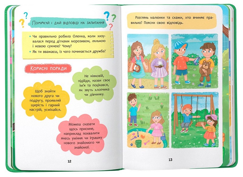 Щоб дитина росла успішною і щасливою, потрібно своєчасно та грамотно розвивати її емоційний інтелект. Уміння розуміти, приймати та екологічно виражати власні емоції та почуття допомагає дітям легше соціалізовуватися, знаходити друзів, почуватися впевнено та мати гарний настрій. Книга «Що робити, щоб знайти друзів?» підкаже дитині, як подолати сором’язливість і познайомитися з іншими дітлахами та як поводитися, щоб стати справжнім другом. До кожного оповідання подані запитання, завдання та психологічні поради, які навчать дитину розуміти та опрацьовувати власні емоції. А отже, гармонійно розвиватися, долати труднощі та почуватися комфортно за будь-яких обставин!