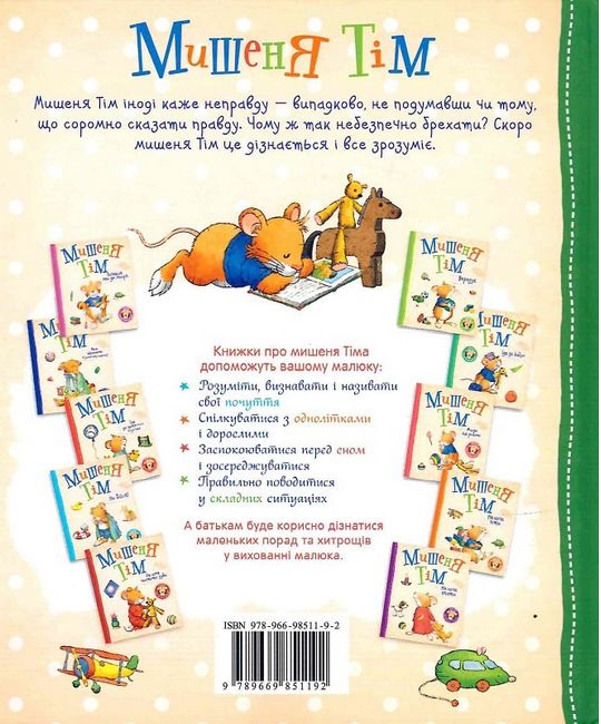 Серія книг про смішного і привабливого мишеняти Тіма допоможе малюкам розуміти, визнавати і називати свої почуття, навчитися спілкуватися з однолітками і справлятися з важкими ситуаціями.