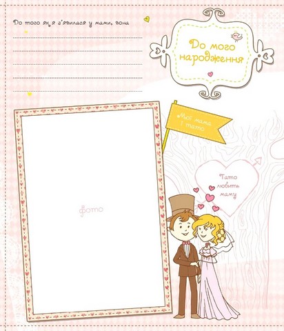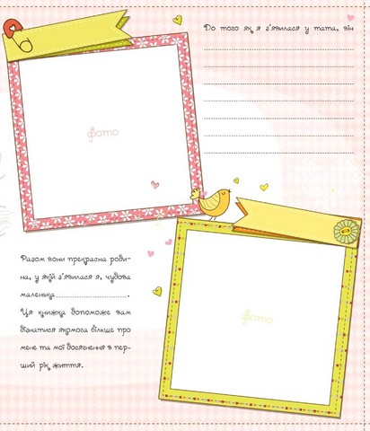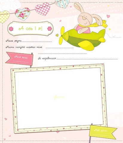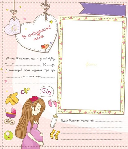 Поява маляти — це найзворушливіша і найдовгоочікуваніша подія в родині. Хіба ви не хотіли б залишити її у пам’яті назавжди? У цьому вам допоможе альбом. Тільки уявіть, як через декілька років ви всією сім’єю переглядатимете знімки — перший день вдома і перше купання донечки, її перший Новий рік і перші успіхи... Відбиток маленької долоньки, кумедні слівця — альбом допоможе вам зберегти кожну хвилинку дитинства найдорожчої для вас людини. Запевняємо, завдяки цьому альбому ваша крихітка залишиться з вами навіть тоді, коли сама стане мамою!