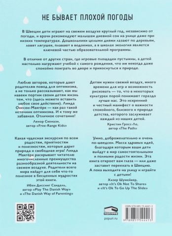 Яка чудова екскурсія по всіх радощів, приятностям і полезностям, які дарує природа і вільна гра! Лінда Макгерк розкриває читачеві численні переваги різноманітної діяльності на свіжому повітрі. Батьки усього світу знайдуть для себе щось корисне в безцінних мудростях цієї книги. — Ібен Діссінг Сандаль, автор «Play The Danish Way» і «The Danish Way of Parenting»