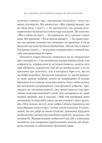 \nТож цей практичний посібник не для тих, кому потрібні зручні сини чи доньки. Він для тих, хто шукає дієвих стратегій мирного сімейного спілкування та покращення зв’язку між батьками й дітьми. Дітьми, які інколи вередують, влаштовують істерики, брешуть, бояться говорити про свої почуття і… плекають добро всередині.