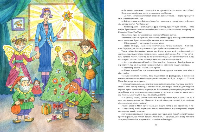 Такса Маня мріяла про тропічний курорт, та що поробиш, якщо її господиня Ната полюбляє кататися на лижах? Доведеться тепло вкутатися по самий ніс і… стривайте! Це що, не той потяг? Куди він прямує? До Фестбурга? Як це «чарівне місто з ельфами й феями», хіба таке буває насправді? І оцей ваш Вайнахтсман справді брат Санта-Клауса?