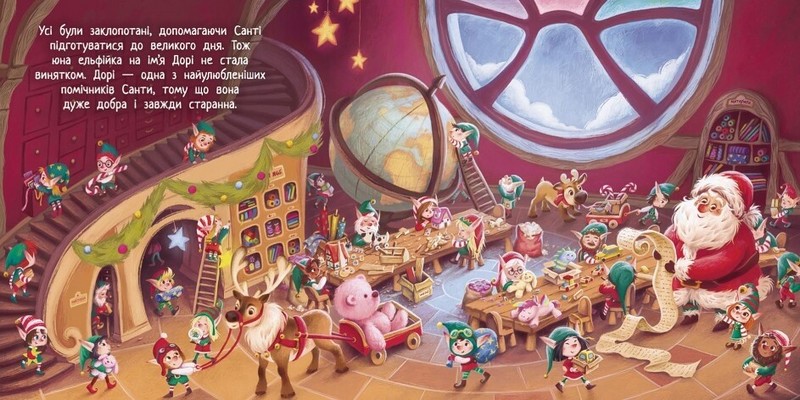 Напередодні Різдва ельфійка Дорі отримує доручення від Санти: доставити подарунок для декого особливого. Дівчинка поспішає виконати завдання, але через негоду збивається зі шляху. Тим часом бешкетне оленя Ренді здогадується, що його подруга в біді, і вирушає на допомо- гу. Чи впорається Дорі з дорученням Санти залежить тепер тільки від оленяти… і трохи від різдвяного дива. Ця книжка стане чудовим подарунком на Різдво. Адже коли дитина впише своє ім’я в історію, вона автоматично стане її героєм.