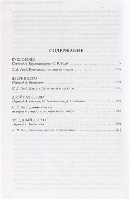 Под одной обложкой собраны четыре знаменитых романа грандмастера американской фантастики. «Кукловоды» — история о вторжении на Землю инопланетных паразитов, подчиняющих себе человеческую волю. «Дверь в Лето» — книга о котах, о человеческом сердце и о том, как найти Дверь в Лето. Потому что каждое существо на Земле стремится ее найти — дверь туда, где тепло, нет холода, нет войны, где тебя не предаст друг и не обманет невеста.