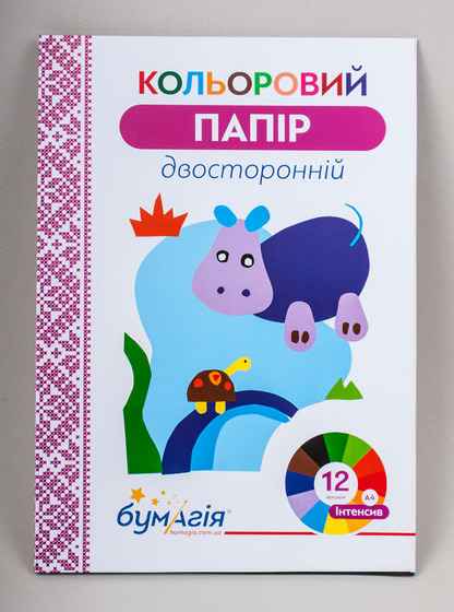 Кольоровий папір Двосторонній Інтенсив 12 кольорів А4 Бегемот Бумагія