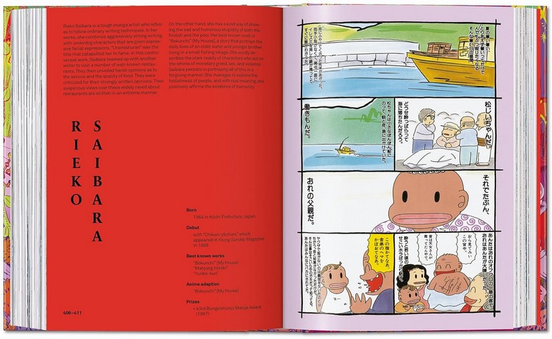 Від класичних майстрів, таких як Осаму Тезука (творець Астро Боя) та Кацухіро Отомо (творець Акіри), до новачків, таких як Хадзіме Ісаяма, кожна стаття містить біографічну та бібліографічну інформацію, опис головних героїв і, звичайно, безліч прикладів найкращих розворотів та обкладинок манґи цього художника.