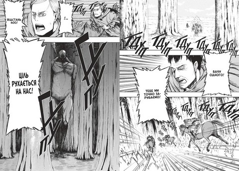 У світі, де панують титани, людство ховається від винищення в тіні величезних мурів. Приречені жити немов у клітці, люди — лише пожива для безпощадних створінь.