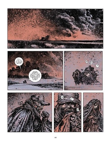 \nДеталі малюнку приголомшливі, і Ману передає кожну текстуру, зморшку, розрив і вивітрення тканини і шкіри. Пісок, бруд і кров відчутні майже фізично, і мені хотілося кашляти від попелу…. справді витвір мистецтва. Рекомендоване доповнення до колекції кожного, хто полюбляє споглядальні постапокаліптичні історії.