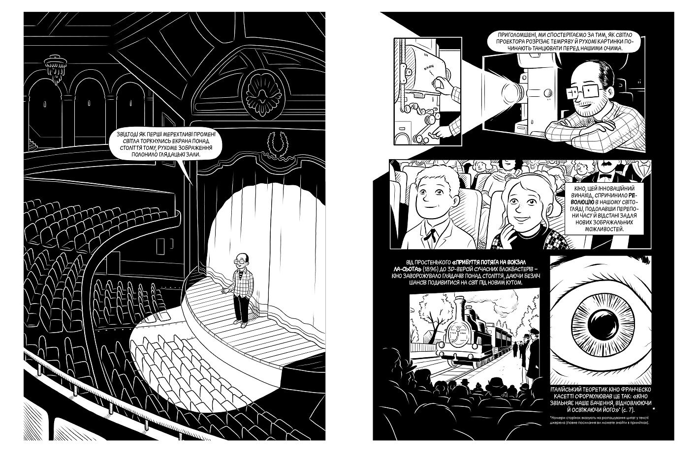 У книжці «Кіношно» художник Едвард Росс кличе нас у захопливу мандрівку історією кінематографу, використовуючи коміксову форму, щоб привідкрити завісу магії й техніки, з яких складаються наші улюблені фільми.