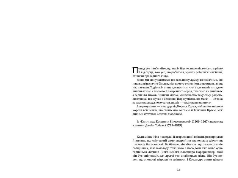 Фейрі завжди ближче, ніж здається. Буває, перетнеш невидиму межу — й далі розбирайся, як умієш, із нахабними принцесами, мстивими совами, дамами, що на дозвіллі вишивають навколишнім страшну долю, нескінченними стежками у глибоких темних хащах і будинками, які щоразу виглядають по-іншому. Саме такі проблеми опосідають героїв і героїнь цих чарівних історій — самозакоханого священника в добу Регентства, лікаря-єврея у XVIII столітті й Марію, королеву Шотландії, а також двох персонажів «Джонатана Стрейнджа і м-ра Норрелла» — самого Стрейнджа і Короля Крука.