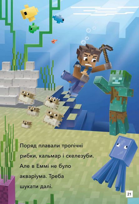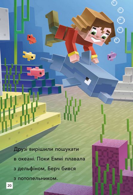 Тексти 2-го рівня розраховані на дітей, що вже вміють читати самостійно та прагнуть стати у цьому впевненішими та вправнішими. Шукаючи пригод у Верхньому світі Minecraft, Еммі, Берч та Кусь зустрічають на своєму шляху різних мобів. А вони бувають не тільки дружніми, а й ворожими!Створені, аби допомагати читачам-початківцям тренуватися і поліпшувати свої вміння!