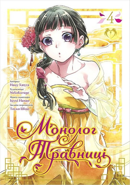 Чи зможе Маомао пролити світло на те, хто за цим стоїть, ви дізнаєтесь в четвертому томі, який завершує сюжетну арку першого тому оригінального ранобе!