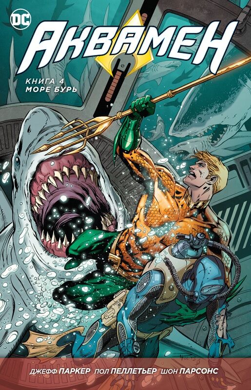 Грядет апокалиптическая битва царей и мифов! Новая творческая команда в лице Джеффа Паркера («Бэтмен‘66») и Пола Пеллетьера («Аутсайдеры») представляет сборник «Аквамен: Море бурь» (в издание вошли выпуски 26-31, второй Ежегодный выпуск «Аквамена» и выпуск № 32 «Болотной твари»)