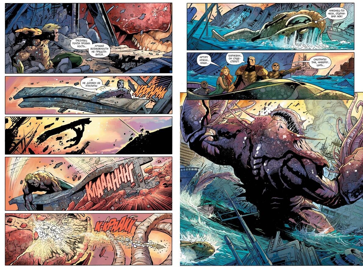 Народ Атлантиды не слишком доволен царствованием Аквамена. А люди со своим неуемным любопытством, похоже, только тем и заняты, что пробуждают к жизни давно уснувших чудовищ и открывают двери в давно забытые бездны. Мир поверхности полнится голодными монстрами, в морских глубинах зреет заговор, и Аквамен разрывается между двумя своими родинами, пытаясь примирить непримиримое. Ему приходится противостоять и выходцам из древних легенд, и новейшему вооружению человечества, и даже самой природе.