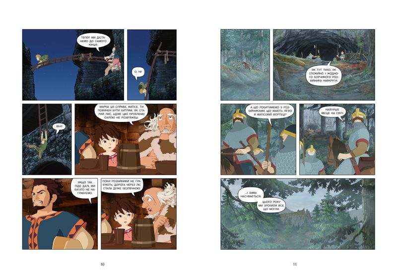 Ви тримаєте в руках другу книжку коміксів про Роню, які створено за мотивами повісті уславленої шведської письменниці Астрід Ліндґрен «Роня, дочка розбійника». Ця книжка розповість про нові пригоди Роні та Бірка, які зустрічають зиму в Матісовому лісі. На друзів чекають карколомні пригоди та чатують підступні небезпеки. Досліджуючи великий і захопливий ліс, Роня зіткнеться з химерними істотами — літавицями і сірячками. А люта зима змусить нащадків двох ворожих розбійницьких родів забути про розбрат і… подружитися.