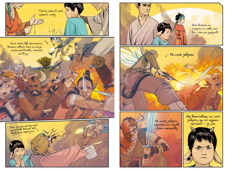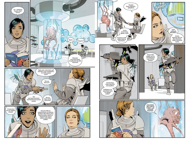 «Сага» — розлога історія про молоду родину, яка з боєм намагається знайти своє місце у всесвіті. Автори комікса — письменник-лауреат багатьох премій Браян Вон («Прайд Багдаду», «Ex Machina») і художниця-улюблениця критиків Фіона Стейплз («Таємне товариство», «До оскоми»). Молоді батьки Марко й Алана, що колись були по різні боки барикад, тепер рятують свою новонароджену доньку Ліщину від найманих убивць, ошалілих армій і страшних чудовиськ. А тепер на дівчинку чекає найхимерніша пригода у нескінченному холодному космосі — зустріч із дідусем і бабусею.